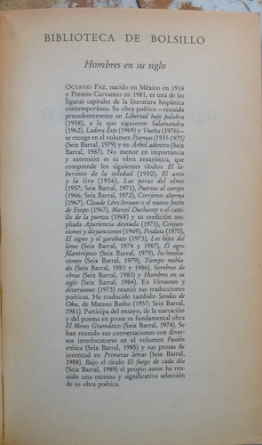 Octavio Paz Hombres En Su Siglo Seix Barral De Bolsillo quantity